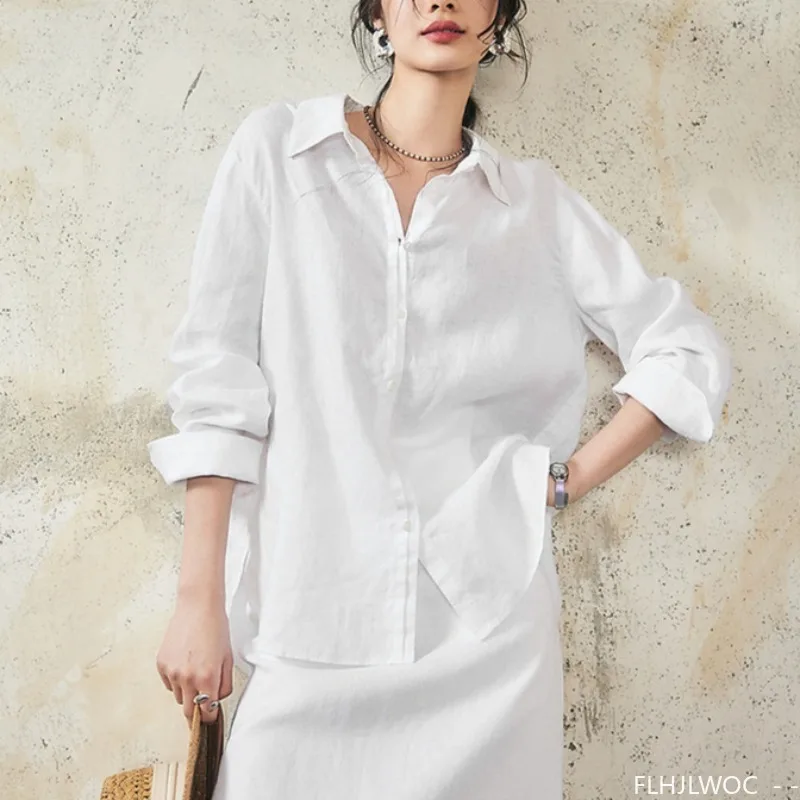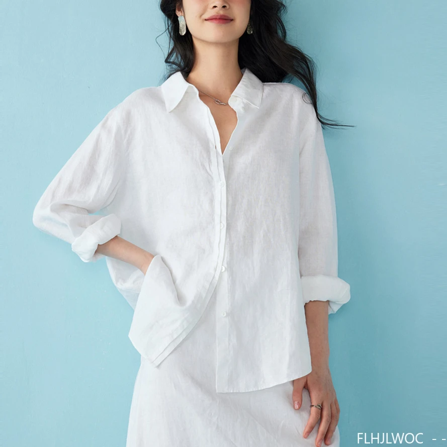 Style polyvalent avec la chemise blanche en lin femme décontractée et ample
