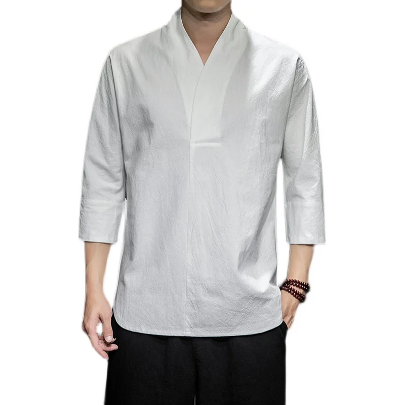 Chemise en lin pour homme, ample à manches longues avec capuche