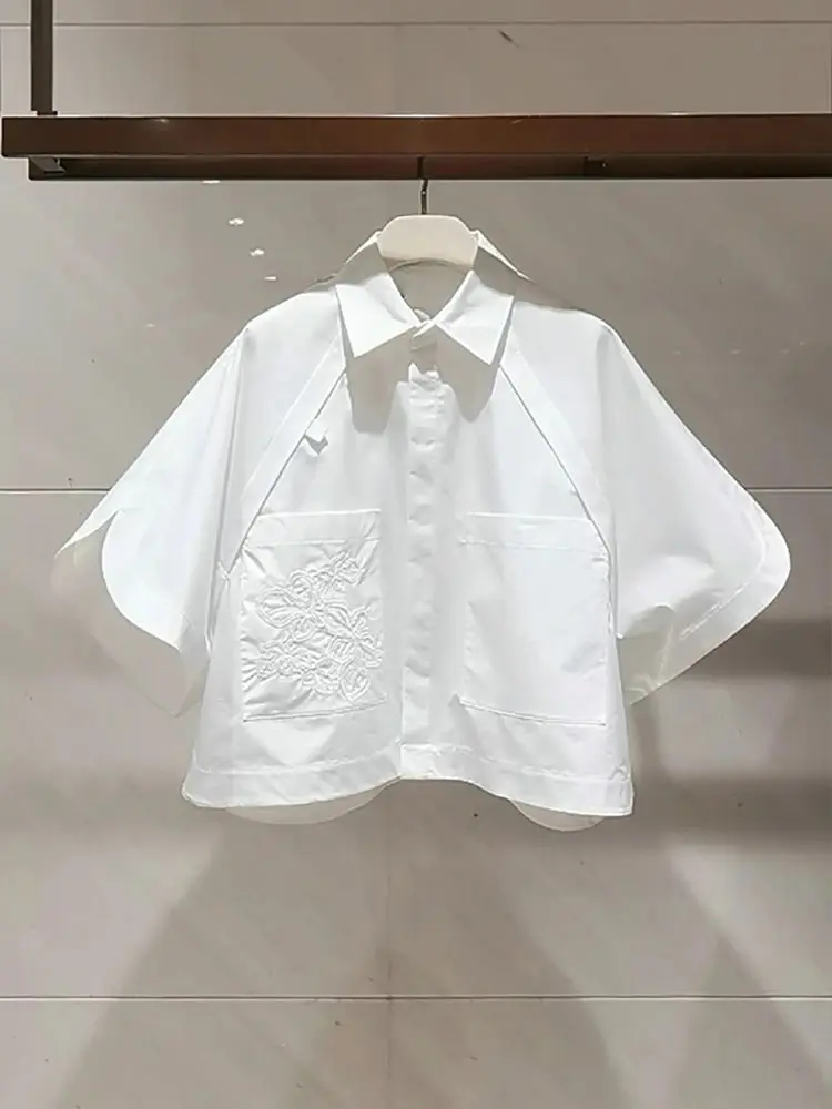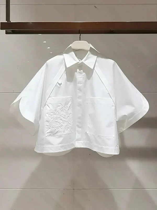 Chemise oversize Blanche pour Femme brodée, à manches courtes